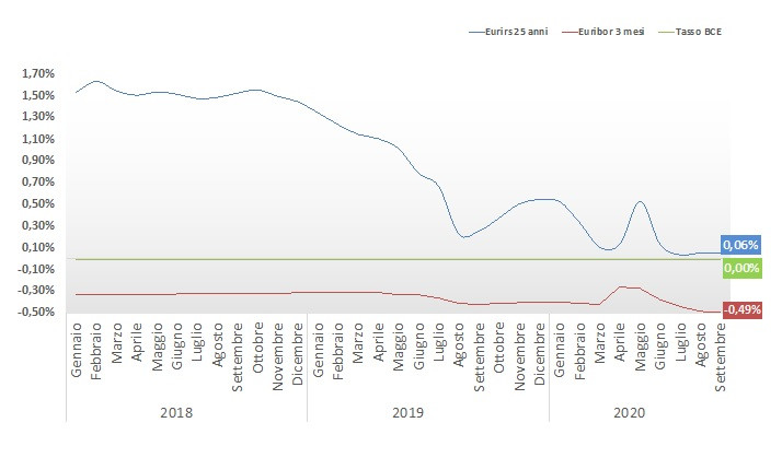 Ad oggi settembre 2020 il tasso fisso è intorno allo 0,7% e quello a tasso variabile intorno